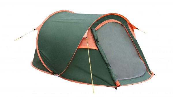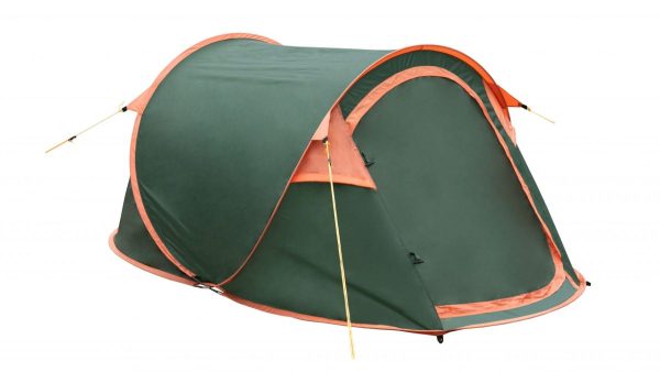 Легкий двомісний одношаровий намет тунельного типу з автоматичною системою установки типу «Вісімка». Призначена для нетривалих аматорських походів вихідного дня в теплий час року і літнього відпочинку. Звертаємо увагу, що колір намету змінено та більше не має помаранчевих вставок. Колір всього намету зелений. Фото буде оновлено пізніше.